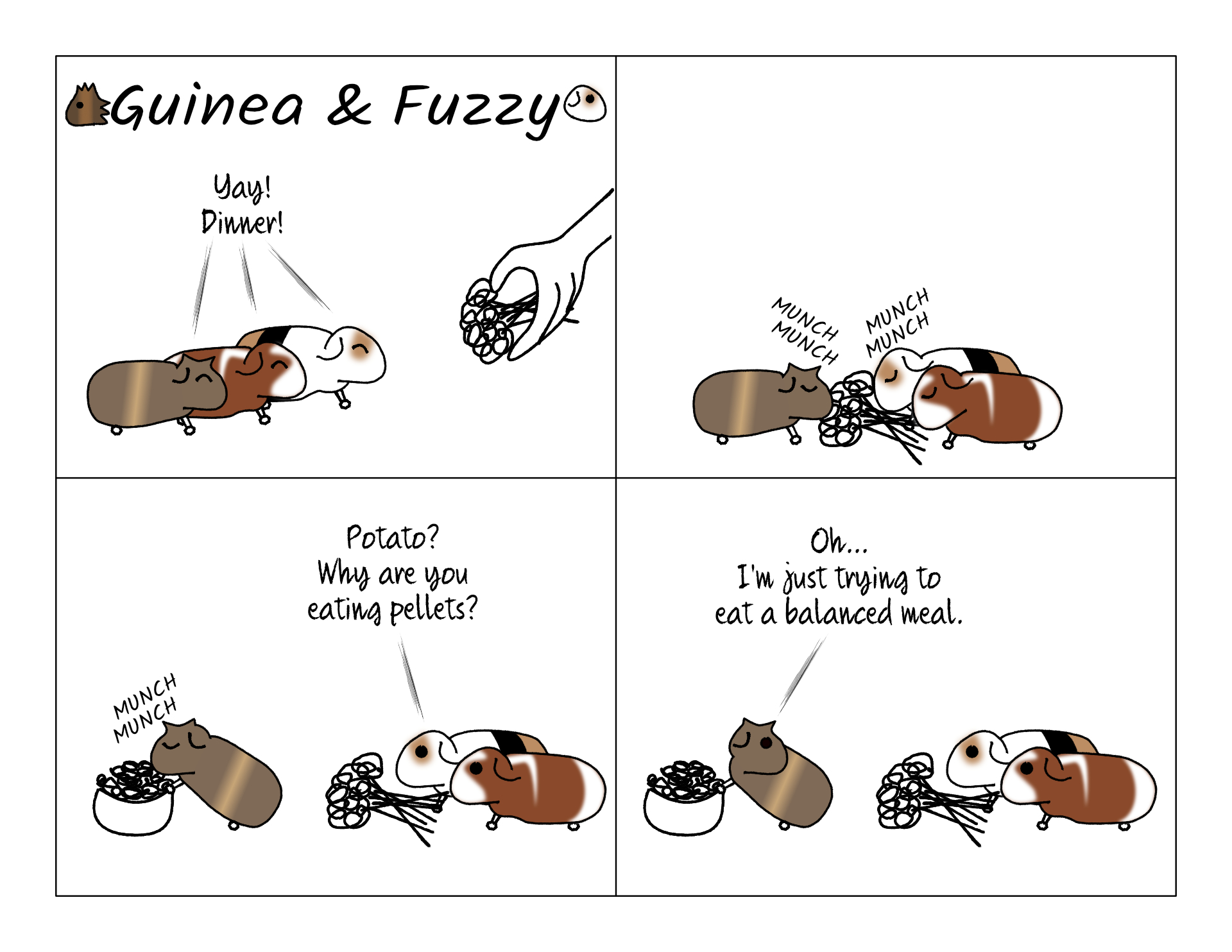 As the slimmest pig, we're always worried whether Potato is getting enough food when competing with the others. He eats slowly and sometimes has to compete to eat. But then sometimes he actually walks away from dinner for a bit to snack on hay or pellets.