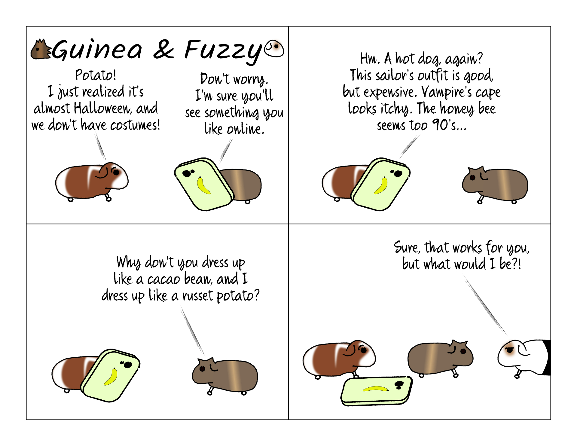 Here it is, the Halloween Series finally. I think the honey bee is probably the most popular guinea pig costume every year. Even the dog version seems to be fairly popular, although I think "hot dog" probably wins for dogs. I'm surprised "baked potato" isn't one I've seen available.