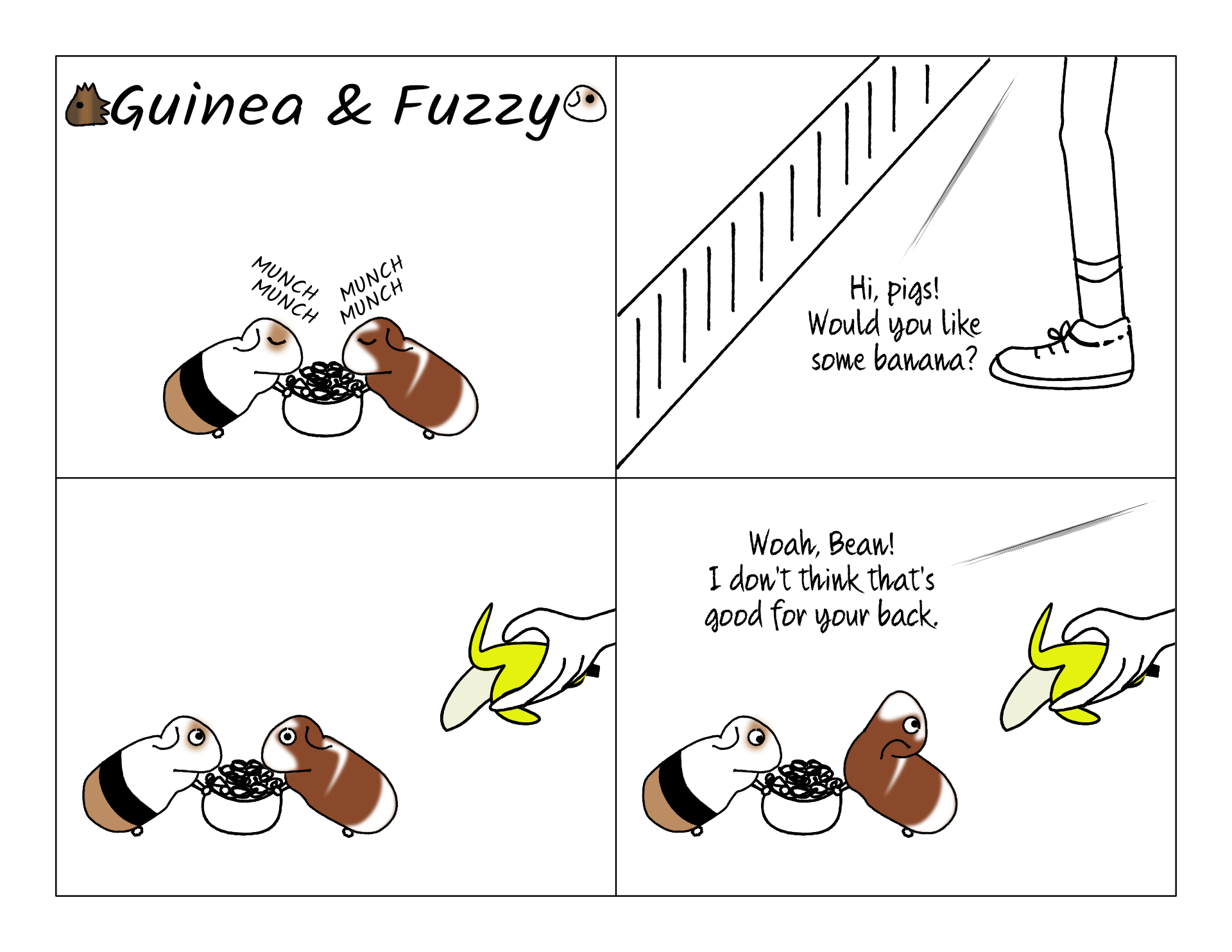 Once again Bean is too much in a hurry to get to the food to bother turning around. Bean may be pudgy, but he's at least flexible. He can ben backward way more than the other pigs. That's not good for his back, though, so we try to convince him not to.