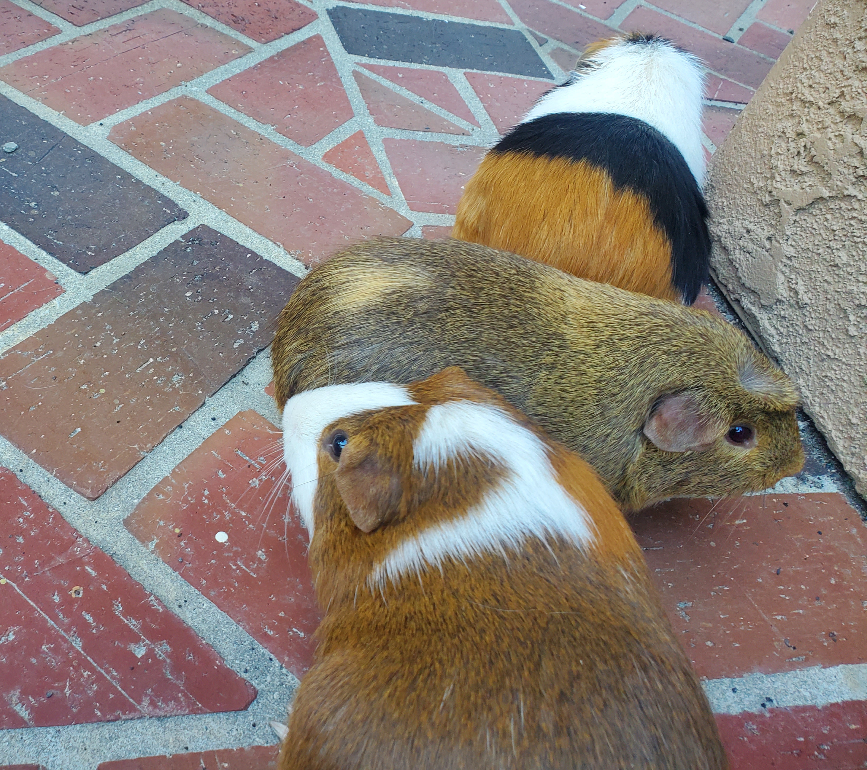This is Fuzzy, Potato, and Bean, in the middle of their own Outdoor Adventure, in the same spot where Guinea and Fuzzy had their adventure many years ago, as pictured on the about page. Fuzzy led the way both times, though not very far. Although he was not afraid of anything, he was happiest at home.