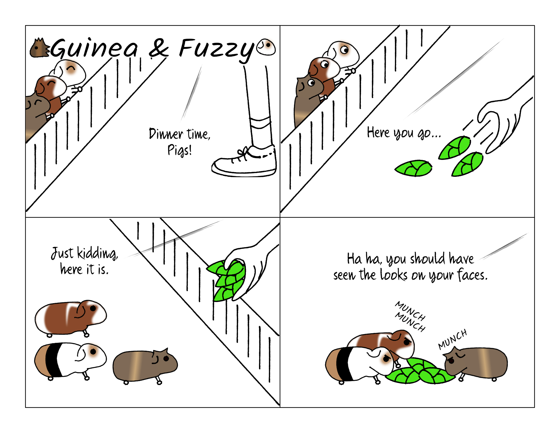 I didn't actually prank the pigs like this at dinner time. Instead, as I was walking up to the cage with their dinner veggies, they accidentally slipped out of my hands and landed just outside of the cage. And those are exactly the faces the pigs made.