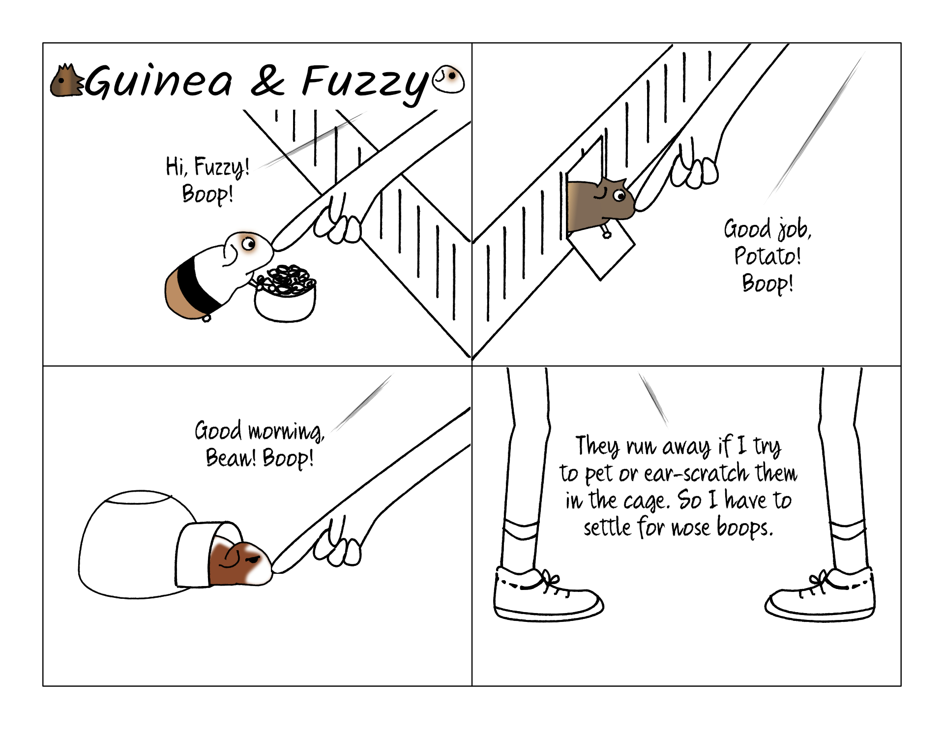 The pigs are usually available for nose booping. Sometimes they're actually being social, but often they are sniffing your hand to see if you have a treat for them. At least it's a nice way to get some piggy interaction.