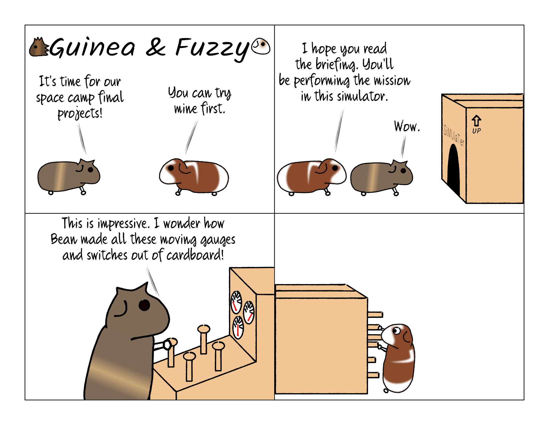Bean may not be an expert in space travel, but I'm sure if Potato taught a class he'd listen. He's a very polite and attentive pig. Though it is surprising that he would have the energy to build all that.