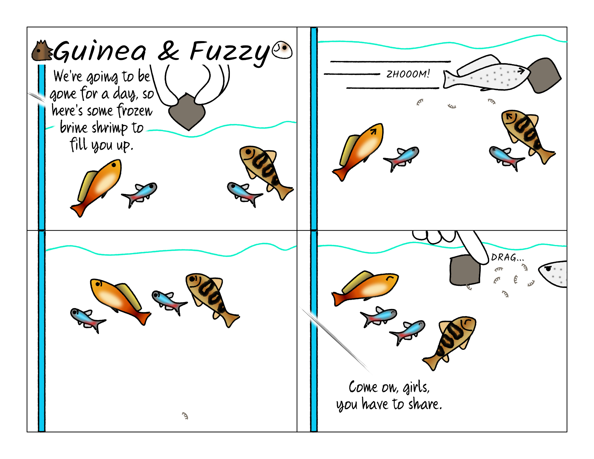 Happy Fifth Anniversary! The very first Guinea and Fuzzy comic was posted online on October 5, 2020, exactly five years ago yesterday. Somehow we've now made it to over a thousand comics. In order to celebrate, I'd like to introduce the third Guinea and Fuzzy book, now for sale in the book shop! It's paperback, 250 pages, and features the next set of comics from the website carrying on from the first two books. That's right, it's 50 pages longer than either of the first two books, and now features Potato and Coco Bean!