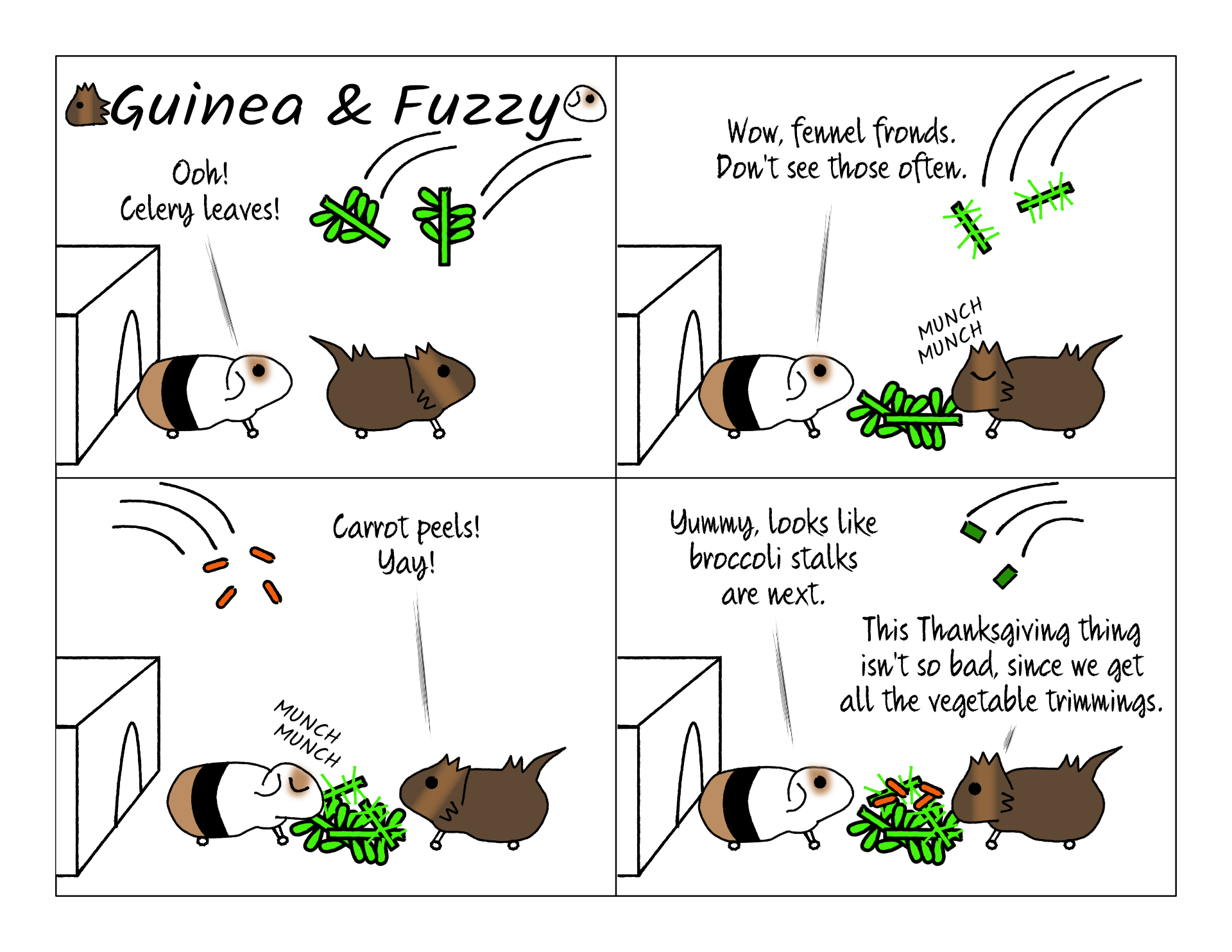 The pigs are so lucky. They always get the trimmings when we're cooking dinner. And Thanksgiving is the best for them, because we make so many dishes, for variety and with the aim of having days of leftovers.