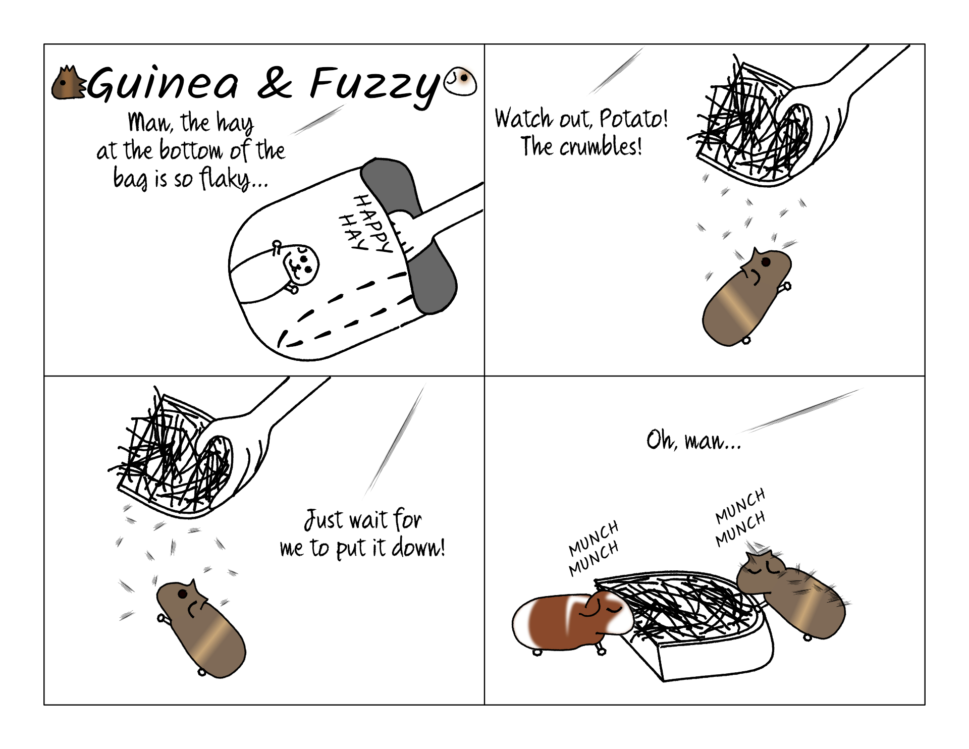 We try to buy hay that isn't too "dusty," as they call it. But sometimes we get a bad batch and there are still lots of little hay flakes in the bag. You can try to shake it off, but it's hard to filter the hay from the smaller hay. This still gets all over the pig blankets and makes them harder to sweep and wash in the washing machine.