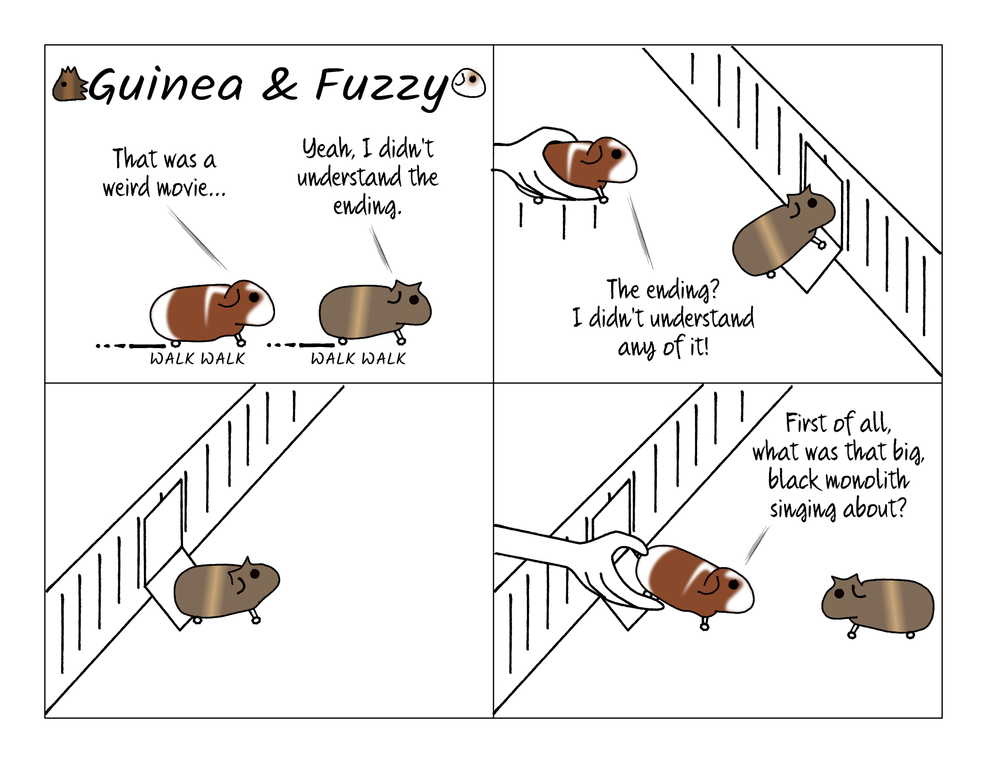 Potato was a little confused when Bean was following him and disappeared on the elevator. But this rarely happened because Potato had a much shorter attention span for movies than Bean, so he was usually first to arrive home.