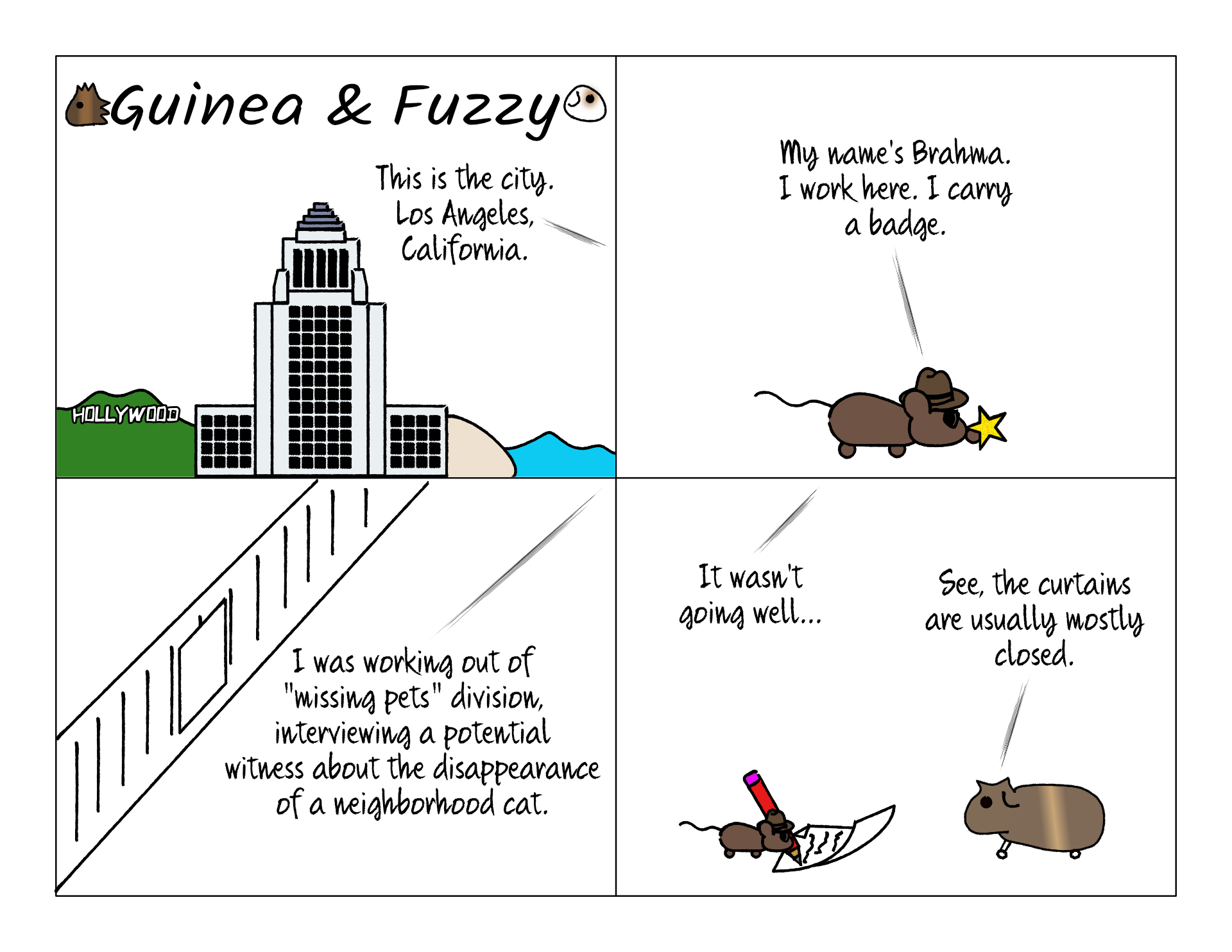 It would be hard for the pigs to witness anything since the only time they leave the cage is to go to the couch for lap time. Anything they see would be through the slats of the venetian blinds. But Brahma has to work with what he's got. People might remember Dragnet as being about homicide detectives, but actually they switched departments from episode to episode.