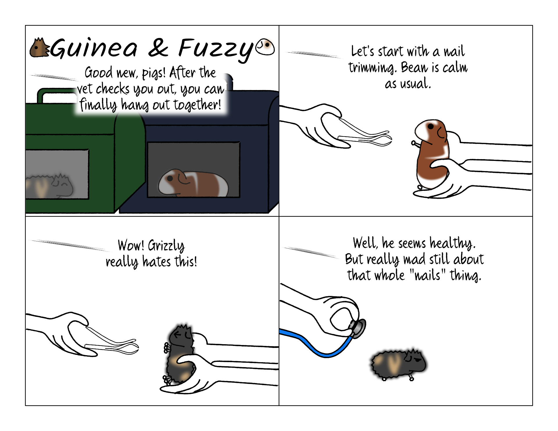 Grizzly really hated the fingernail clipping for some reason. He's already a squiggly pig, but he especially protested. Maybe that was his least favorite routine at the pet shop.