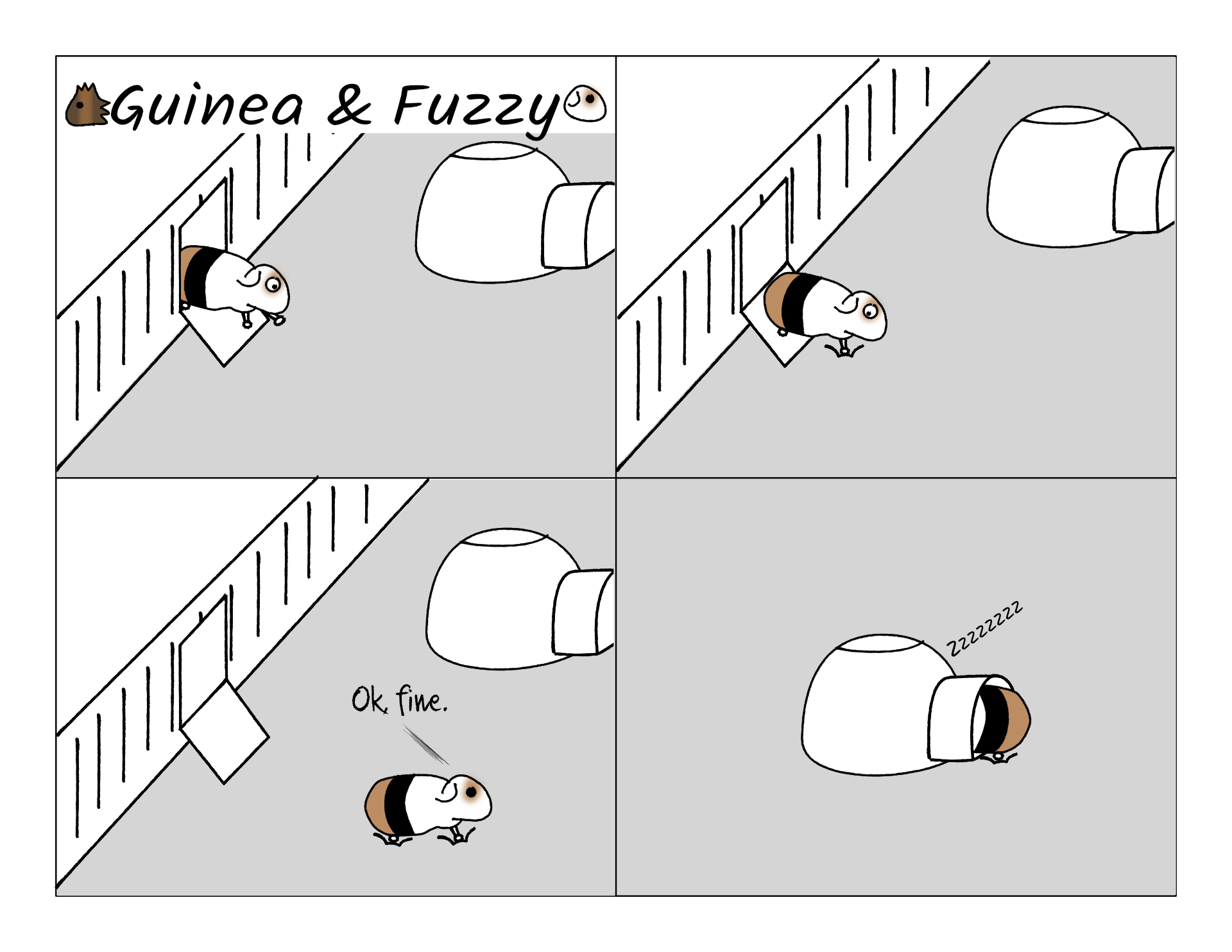 Fuzzy spent the whole day avoiding the new liner until he finally realized he was tired and all of the hidey holes were in the room with it. Then he directly climbed into his pigloo and went right to sleep, like it was totally normal.