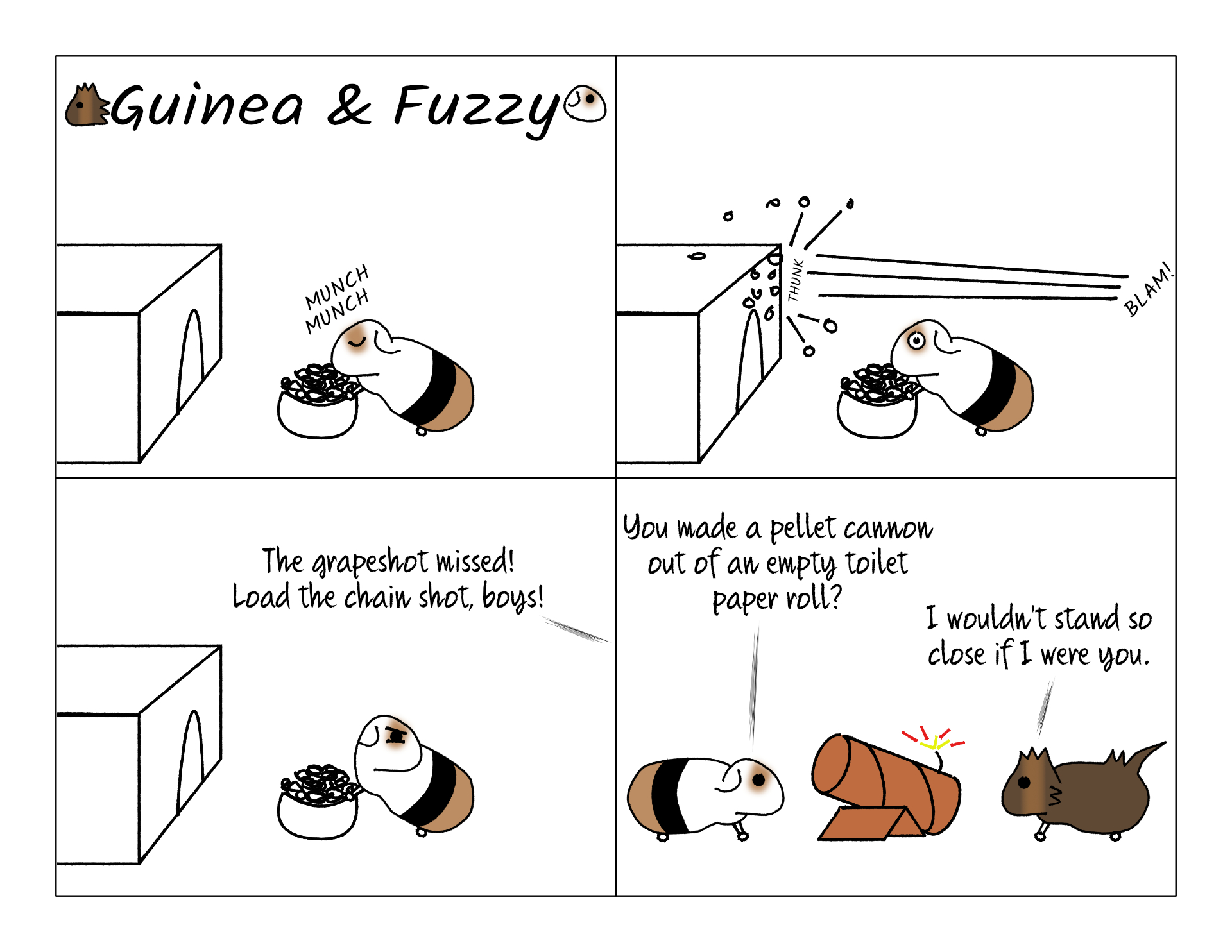 A food cannon would be a pretty funny arts and crafts project. Good thing Guinea didn't try launching himself!