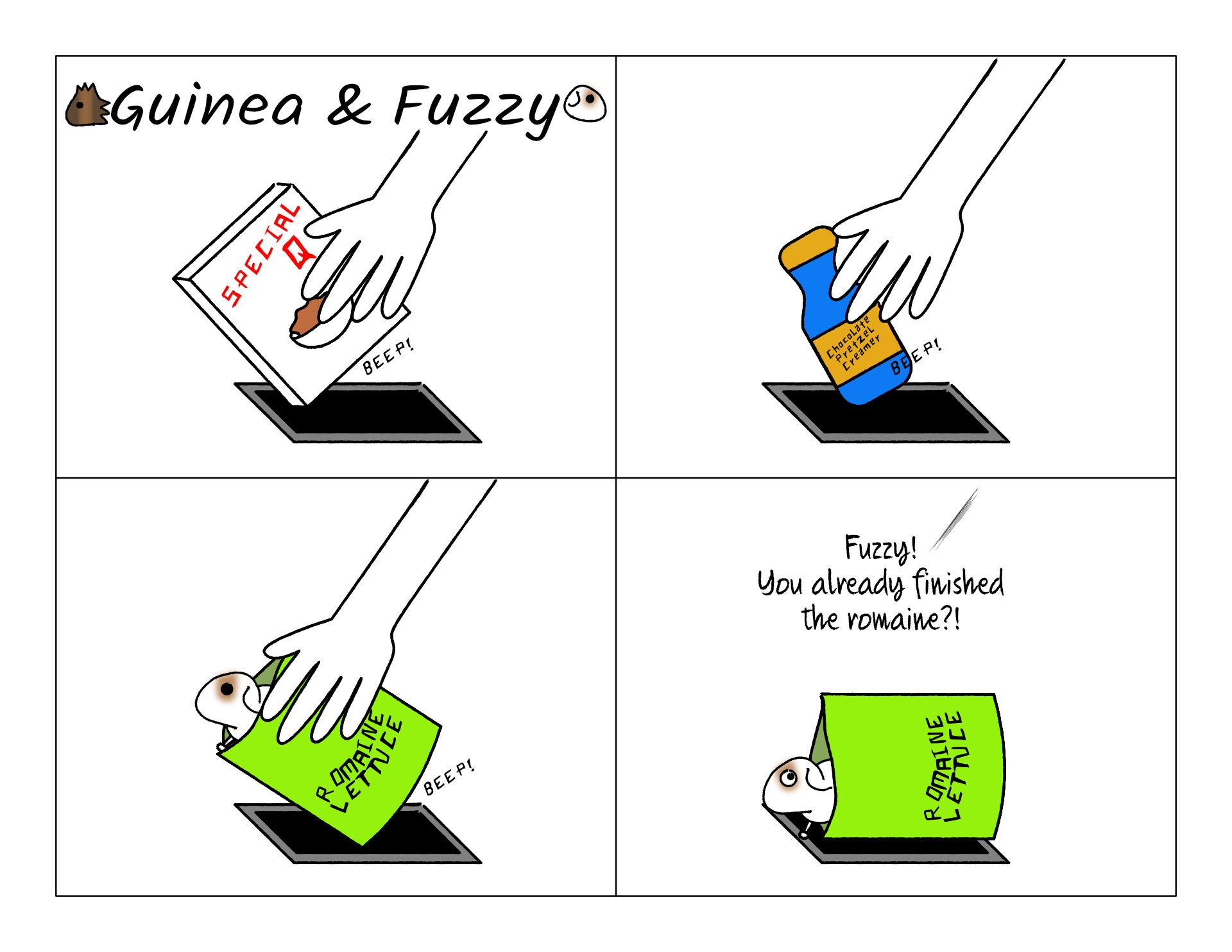 Fuzzy is way too heavy for a romaine bag. He'd rip right through it. Especially right after eating its contents. He has a big appetite, but that might be more than even he can finish. I do like how happy he looks in there, though.