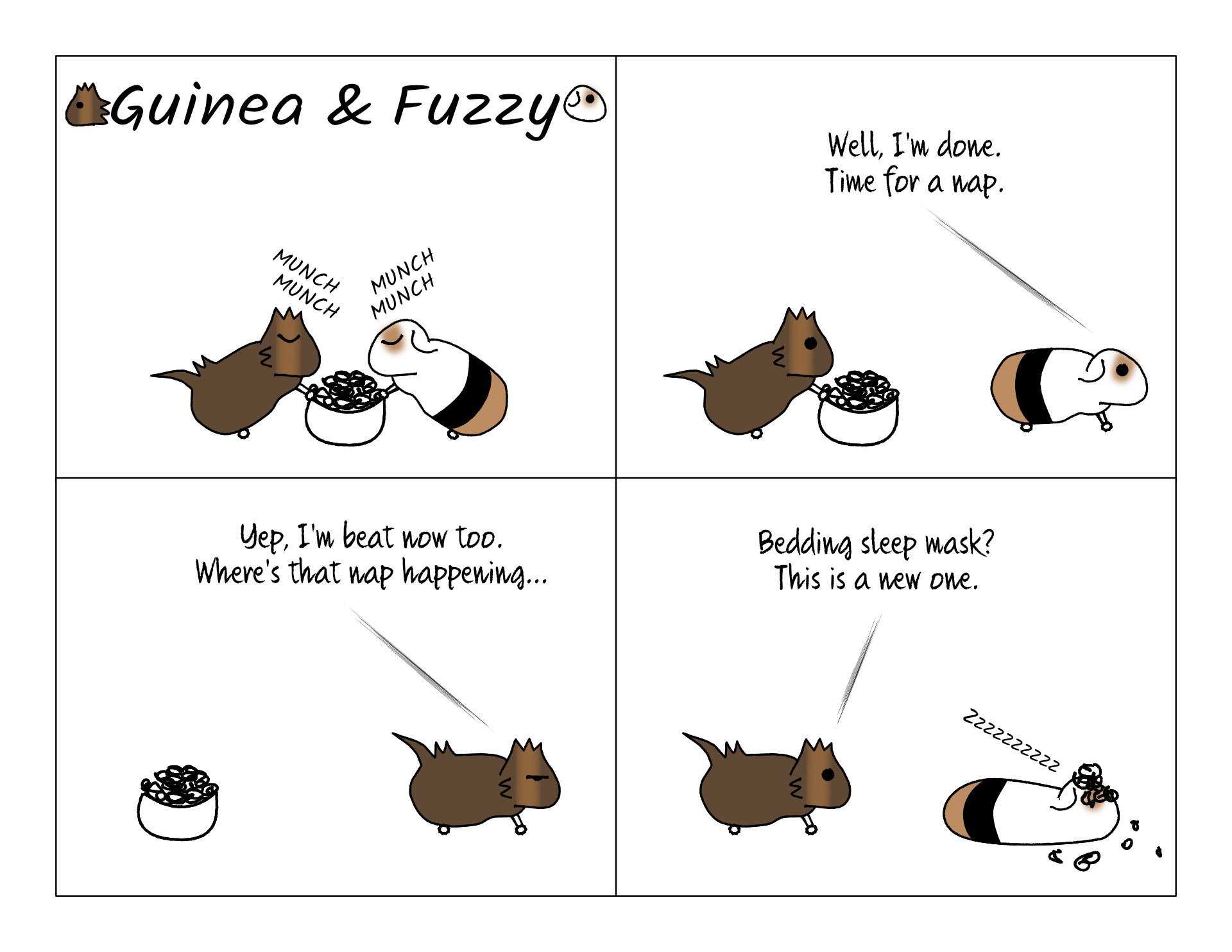 The pigs don't always sleep in their pigloos. When they're feeling particularly secure, sometimes they find a nice corner, in or out of the sun, as the case may be. But when they do, they just rest their chins on their paws and sleep. The one time we saw Fuzzy cover his face with bedding was quite a surprise.