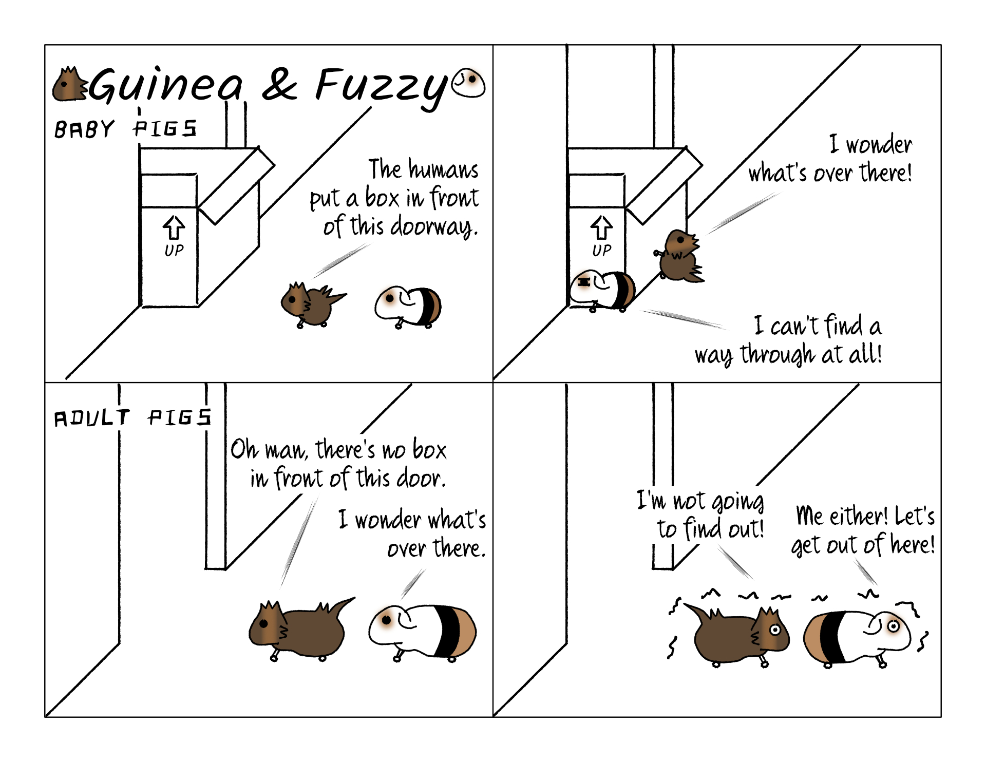 Now that they're older and more comfortable with their surroundings, we never use the luggage. The door is open, and yet the pigs have never dared explore the living room during floor time. In fact, it takes some encouragement for them to fully explore the dining room, and they only very rarely enter the kitchen!
