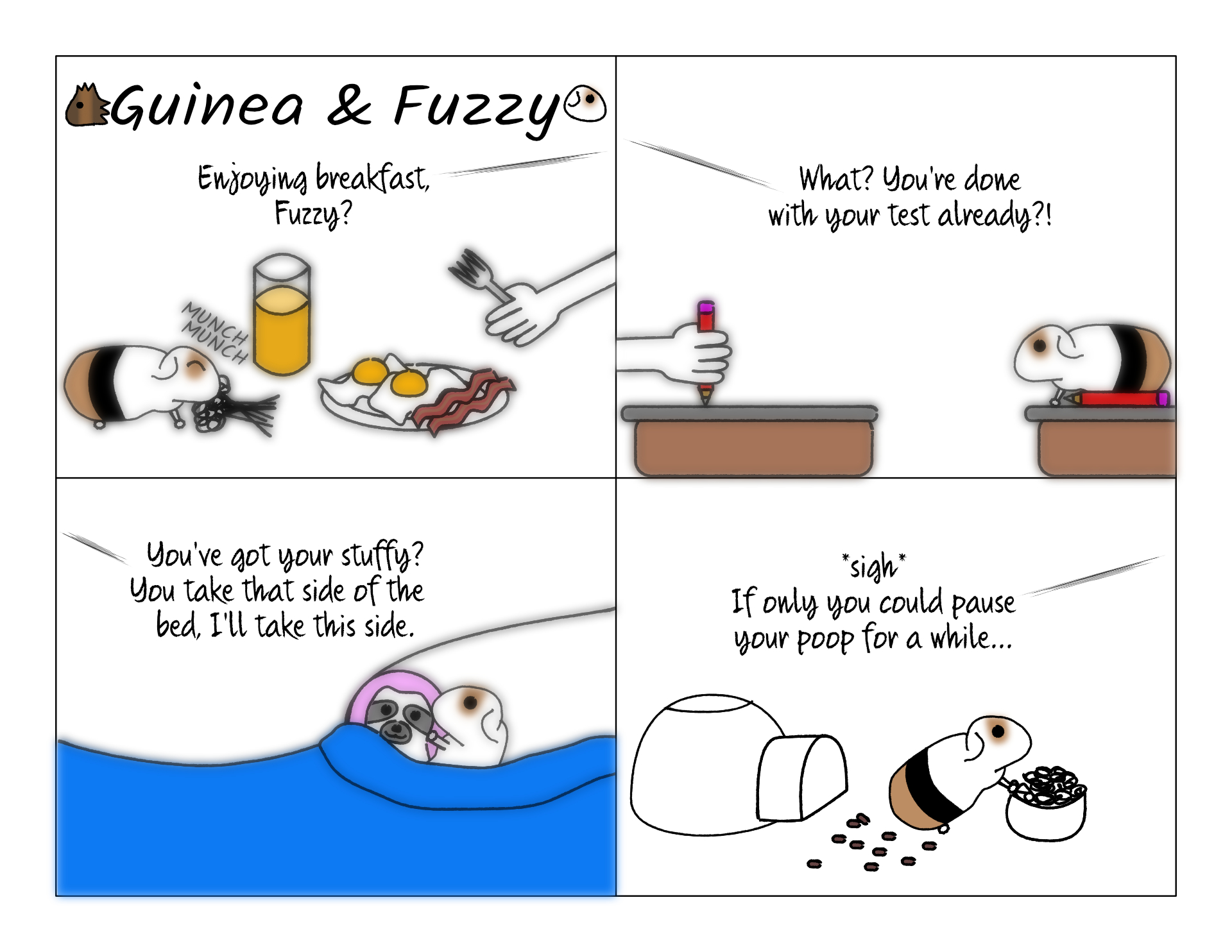 This is the dream. Fuzzy is such a snuggle pig. But he #1s and #2s so much he can't do most things with us. He'd can sit and watch a movie for fifteen minutes. But we can't bring him to the living room and hang out for a hour or he'll make a mess.
