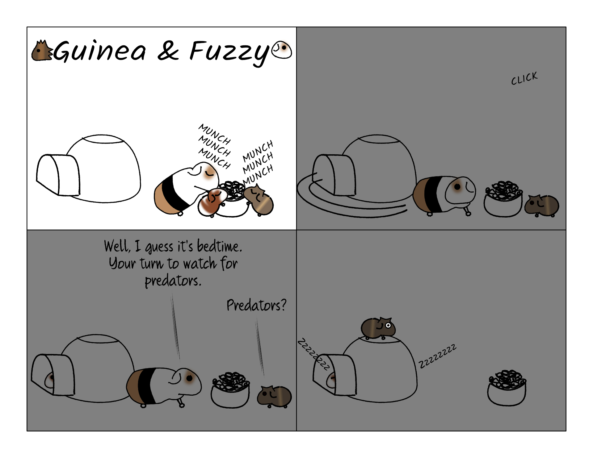 Not that Guinea and Fuzzy ever felt like they needed to guard. Not sure what made Potato so serious about it. Maybe he has the strongest instincts of the bunch. Or maybe it was something Fuzzy said to him.