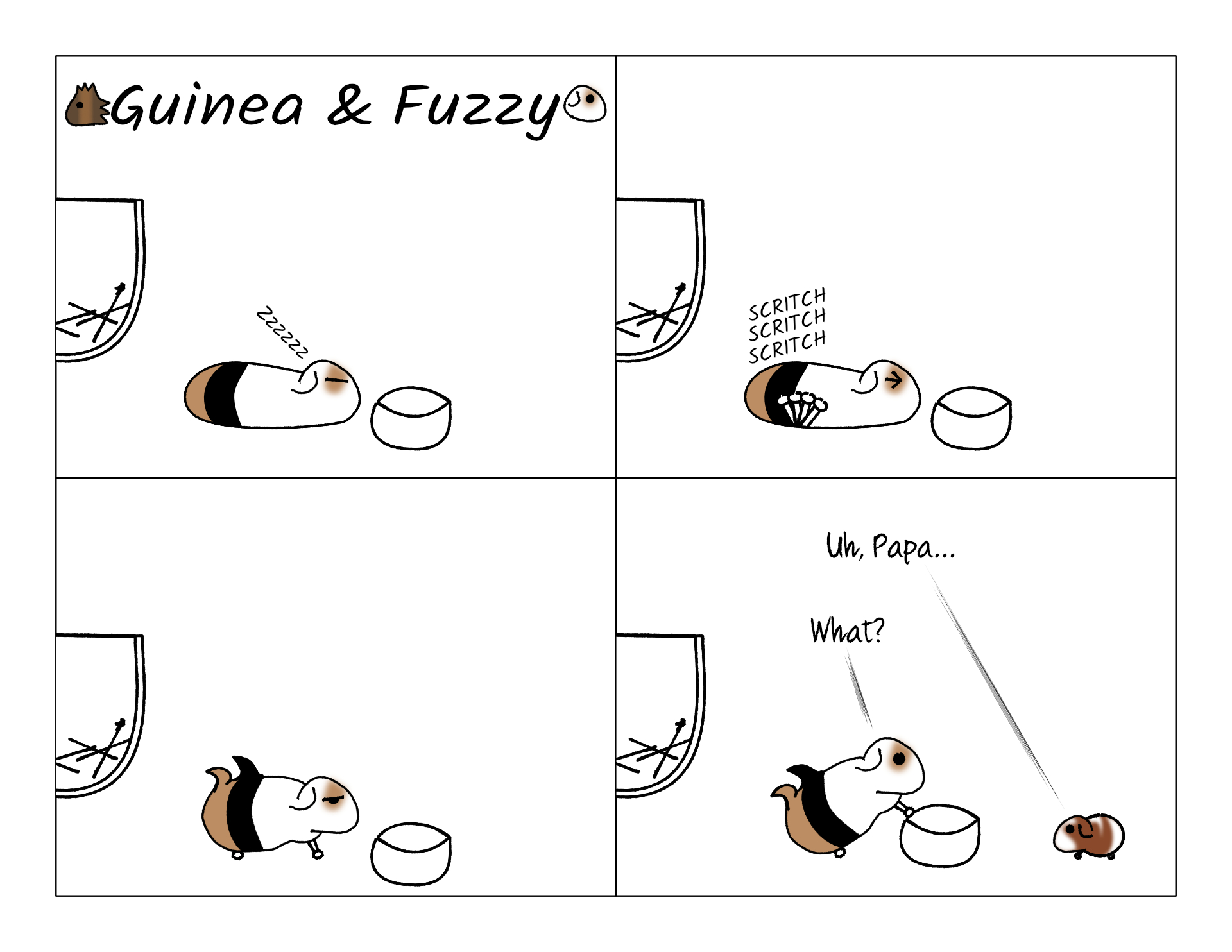 Fuzzy actually has very well groomed fur. All short-haired American guinea pigs do. But every once in a while he'll get food in it or something which will make it sticky or matted, and that really makes it stand out from the rest.