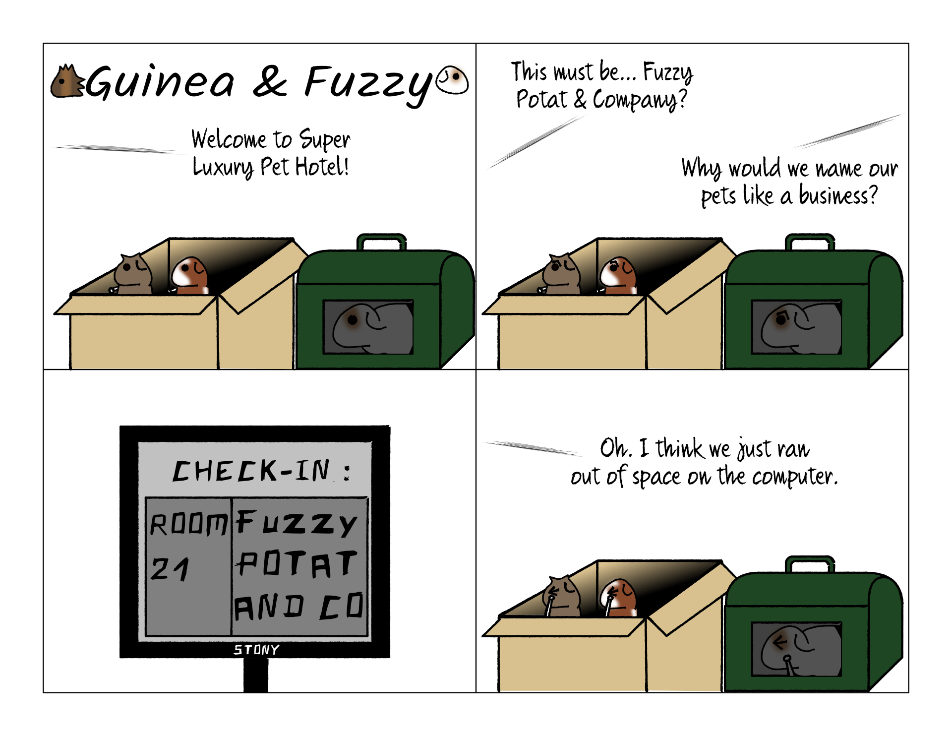 They didn't actually think they were named after a company. But they were limited by the computer and chose to enter their names this way. All of their belongings had to be labeled "Fuzzy Potat & Co" when we dropped them off.