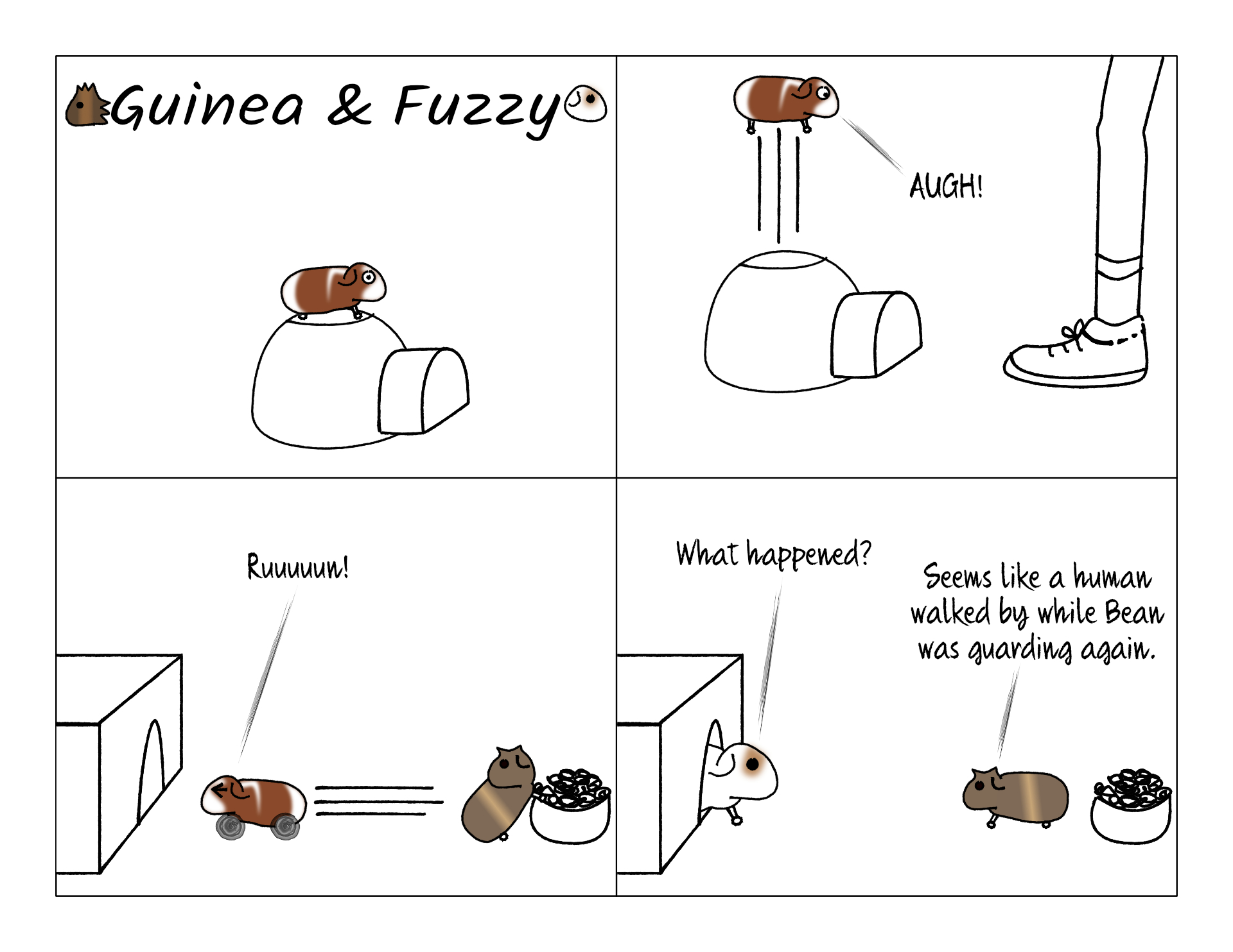 Once in a while Potato will convince Bean to take over guard duty for him. We'll see Bean standing in the same spot Potato usually does, looking alert. It's usually while Potato is napping, or has to step away to eat some pellets.