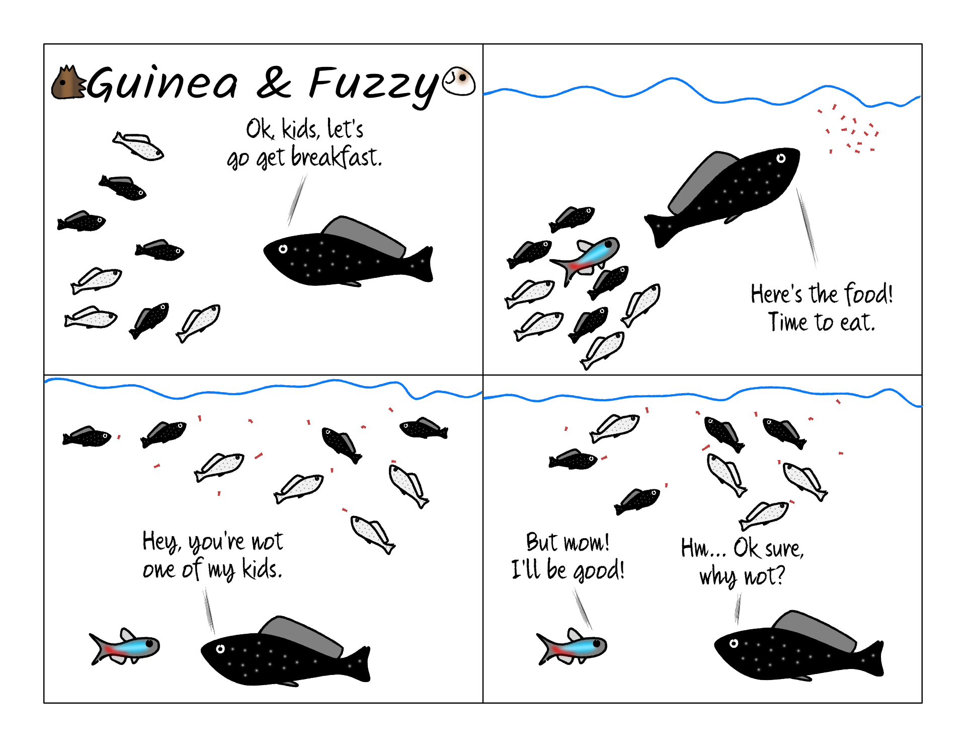 The good news is molly fry are schooling fish too, and they finally welcomed the tetra into the group of kids. It's been months and he seems pretty happy with his new family.