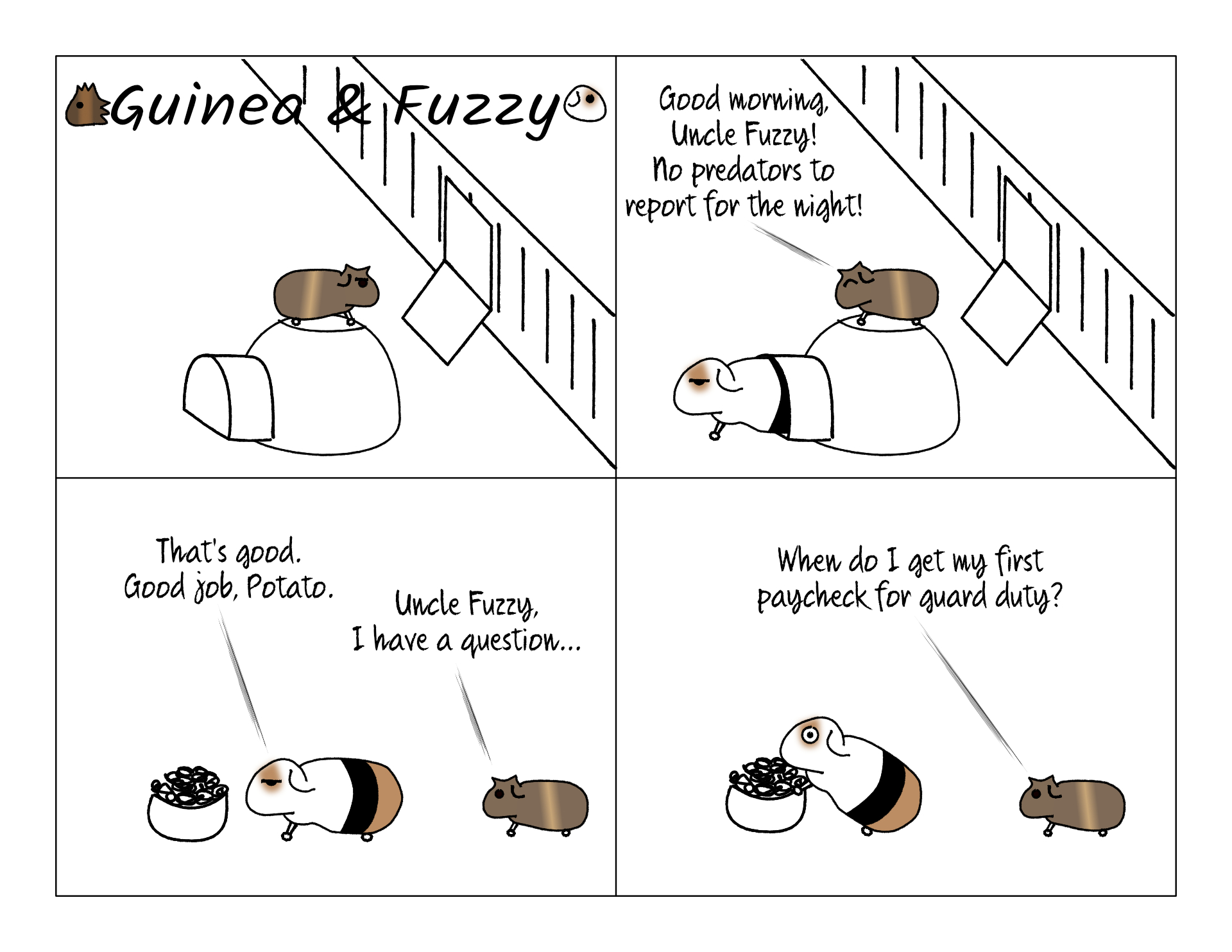 The other pigs don't seem to pay much attention. Bean goes running even if Potato doesn't sound the alarm. And Fuzzy is too calm to mind much of anything.