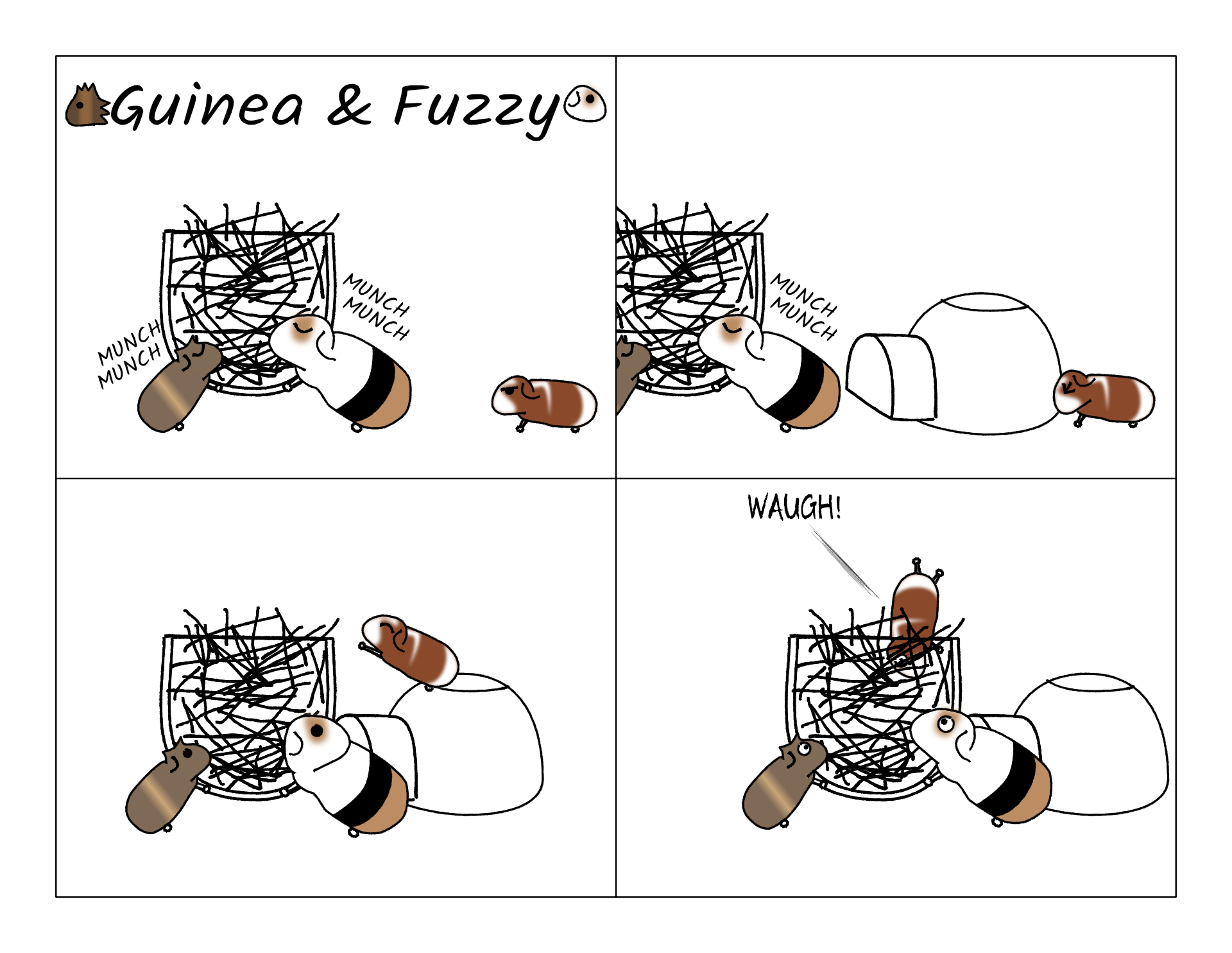 Poor Bean. He was actually really smart to come up with this idea for bypassing the hay line, which he did in real life. He pushed the pigloo with the steps on it up to the hay rack and then leaned over to eat from the top. Unfortunately he lost his balance and fell right in, face first.