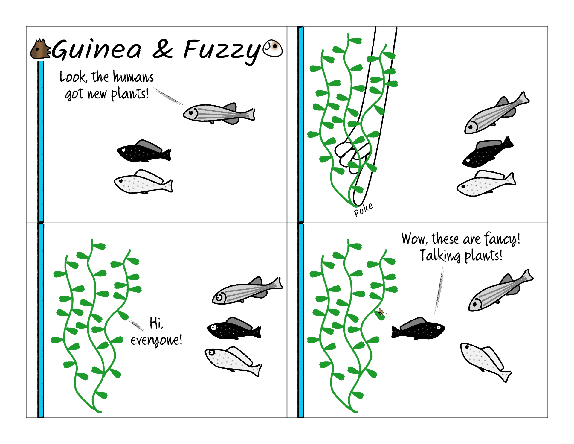 At first we were pretty excited to see a new, baby snail to live with Dotty, Spotty, Raven, and Stripes. We named him Big Guy, because he was so tiny... Until we realized he was a pond snail, an invasive species capable of reproducing by himself. Now he lives somewhere in the park.