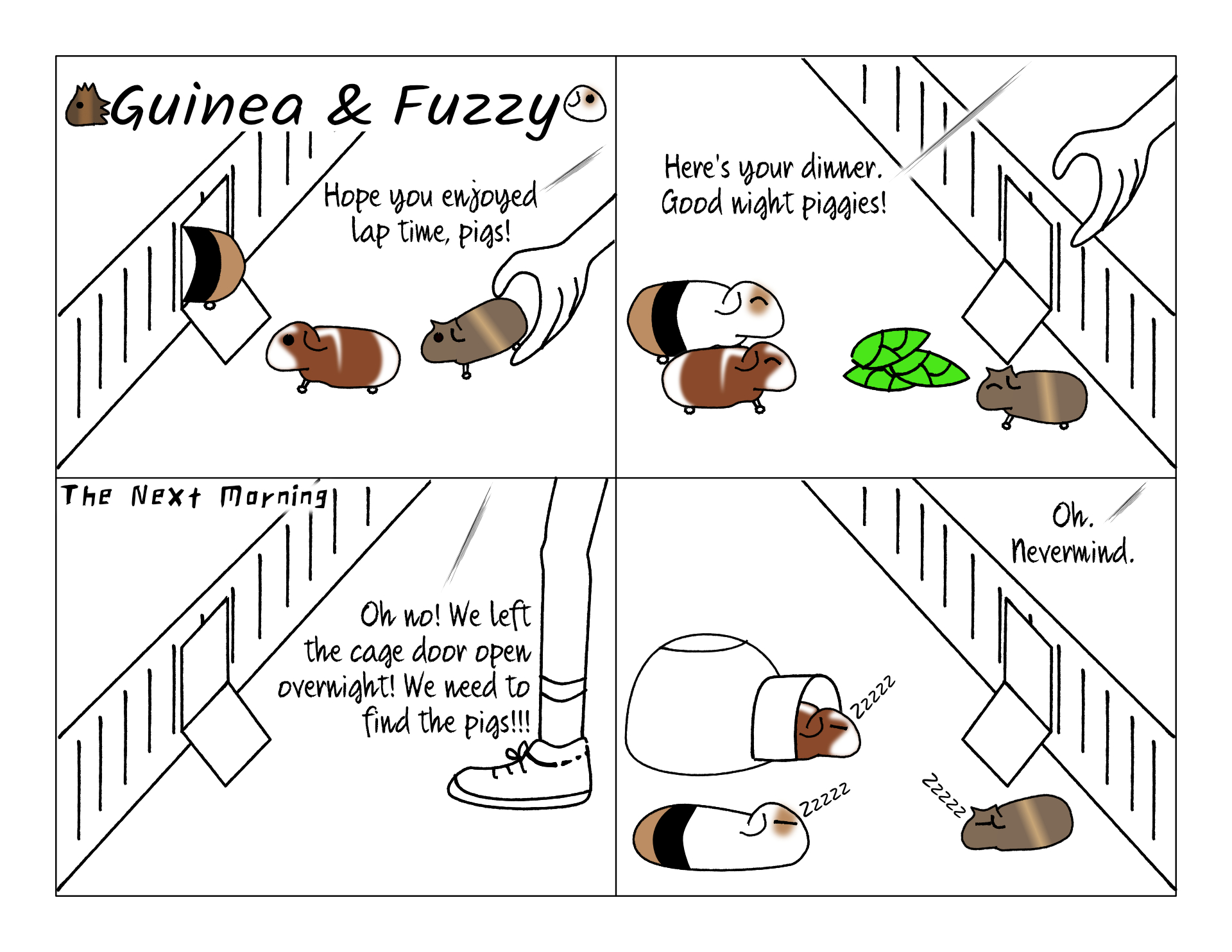 When Guinea made his famous escape, he wasn't getting as much floor time as Bean and Potato yet, and we were also newer to this house.