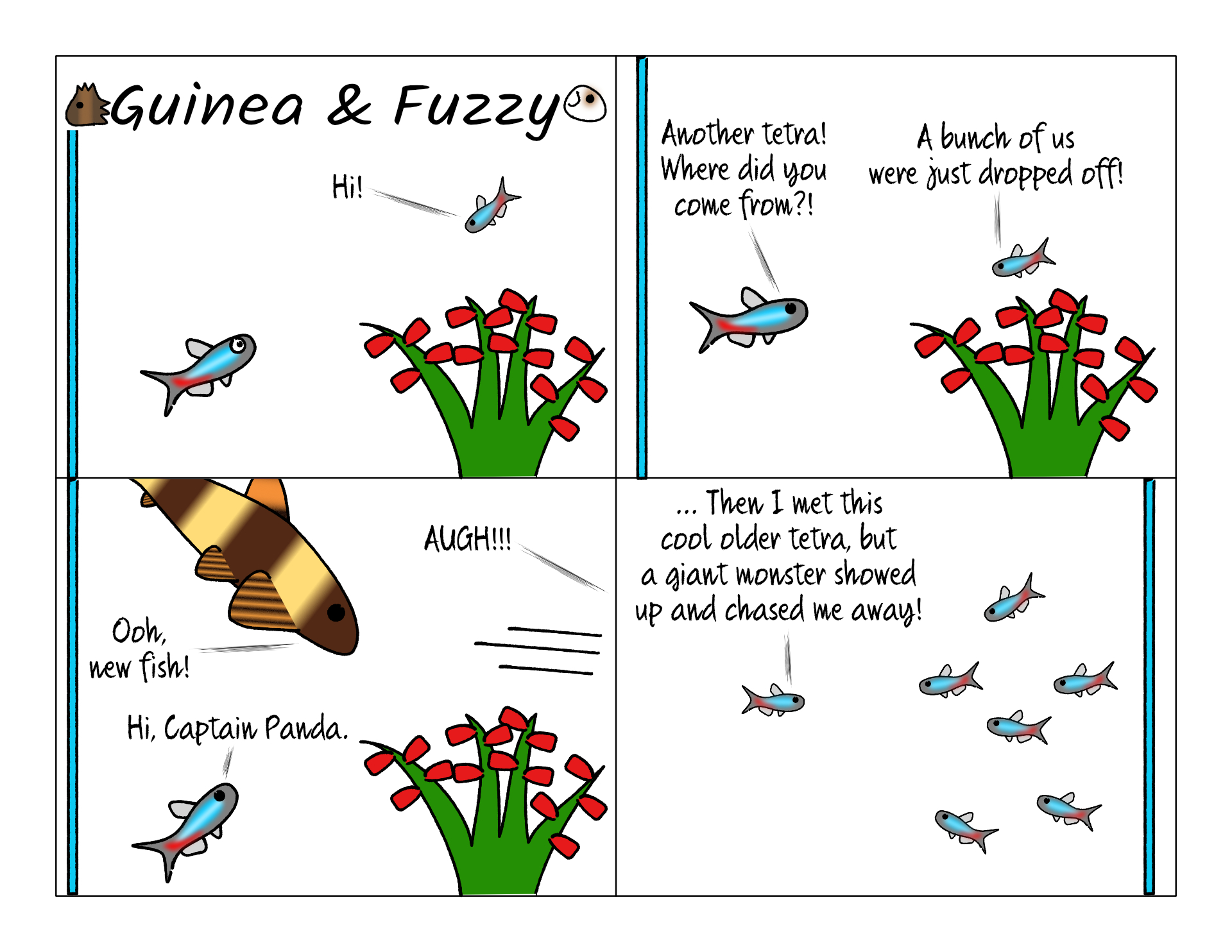 Luckily it also didn't take them too long to get over their fears of all the other fish in the tank.