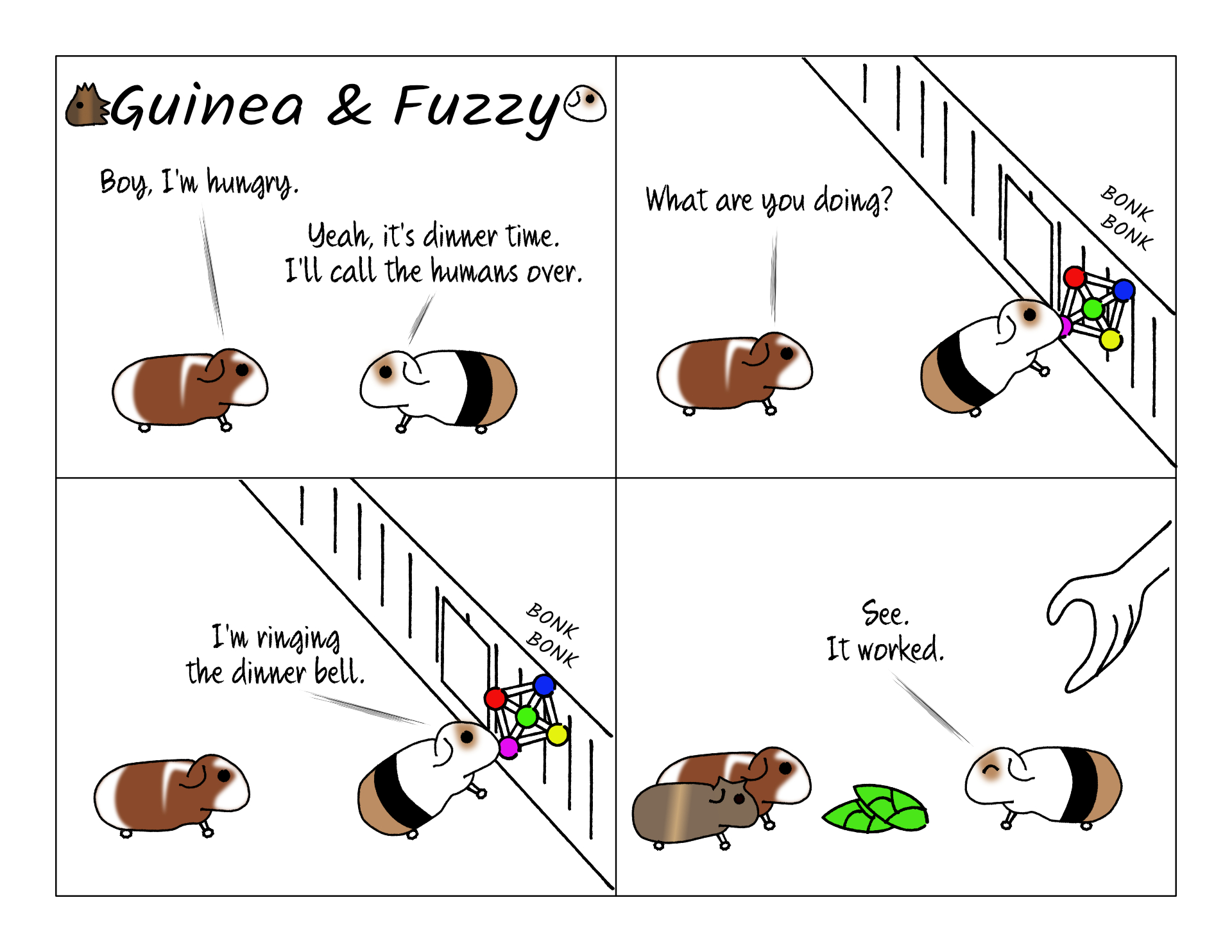 The pigs don't usually have to get our attention at meal time. We follow a regular schedule. Six large romaine leaves every morning for breakfast, just as we're eating breakfast. And then a big handful of a random vegetable every night before bed.