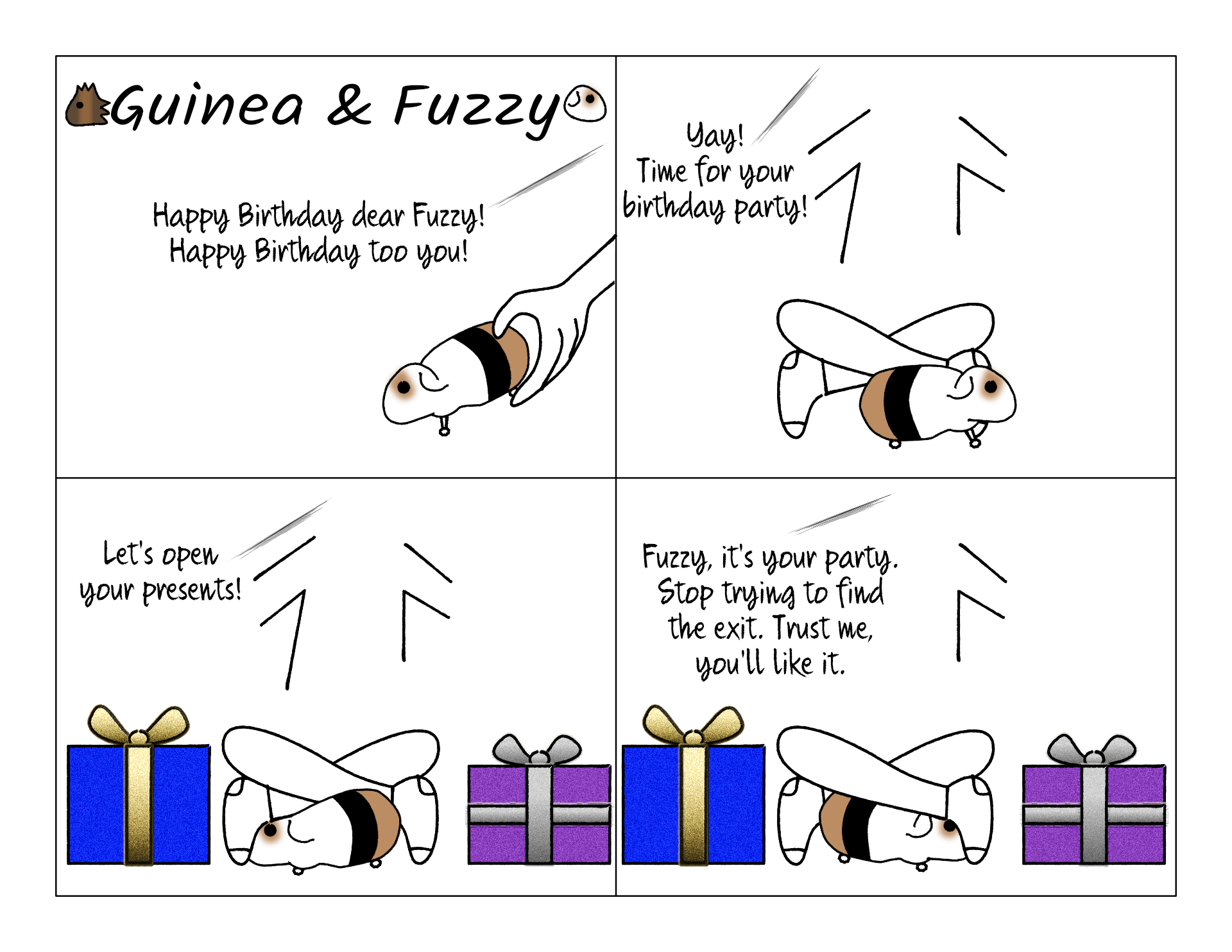 We didn't actually wrap his gifts this time, but we did buy a few presents for Fuzzy. You'll see soon what we got him, but we had a present-opening session for him where we unboxed them.
