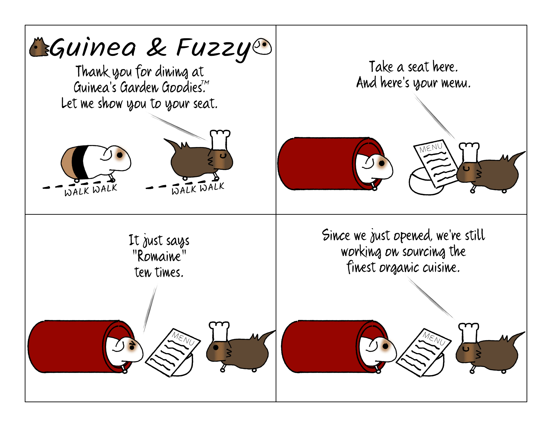 Daughter of comic #2 February 1, 2021 - 11:40amWe always go to the pigs, and lead them out side and they go on our laps, and we feed them romaine romaine romaine. |