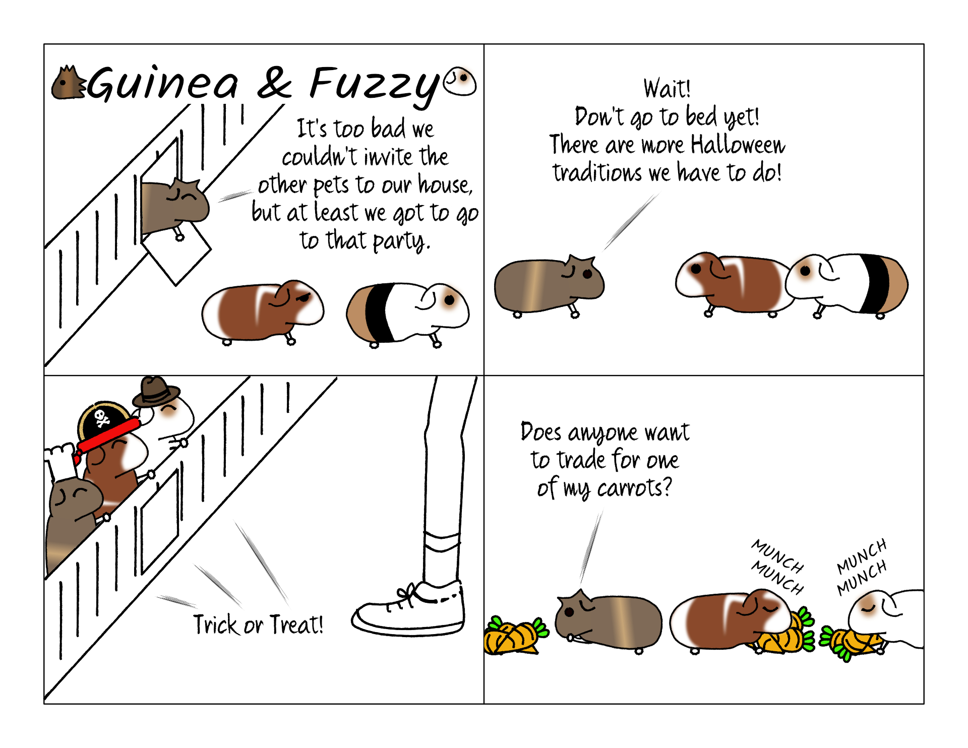 The piggies trick-or-treat from us every day! Well, they don't wear costumes, usually. But they do get treats. And if they could come knock on our door for them, they would.
