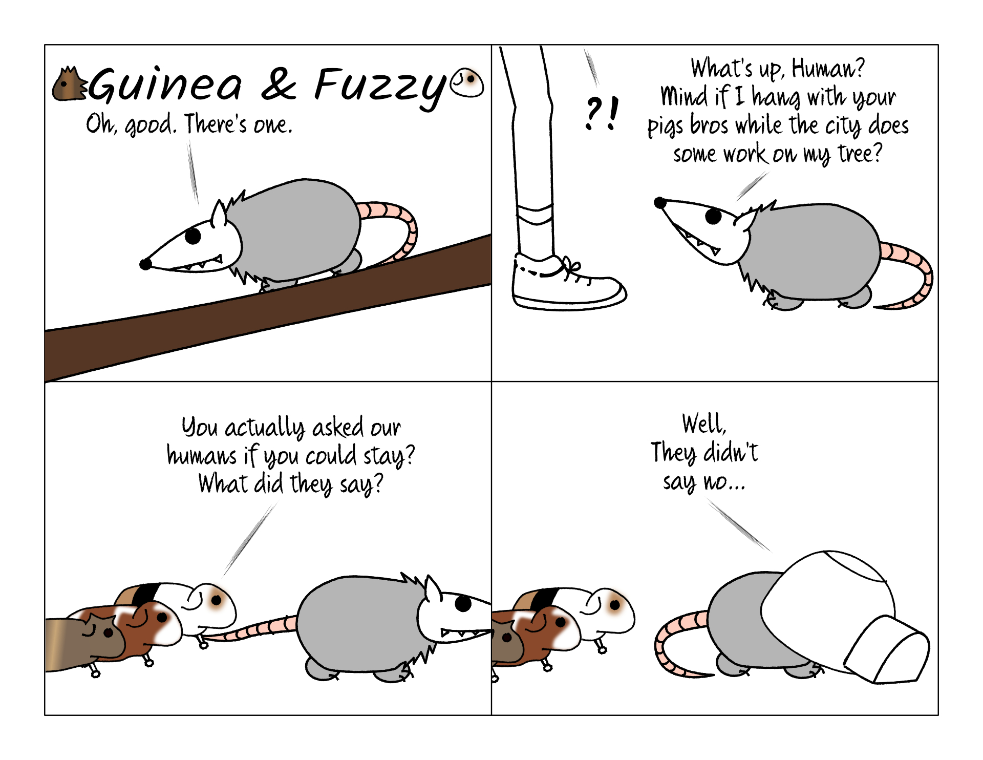 I was outside taking out the trash at night, and a possum came strolling down the driveway, confidently walking directly at me. He almost walked right into me until I said "Hi." He jumped slightly, but then tried to play it off by nonchalantly turning and walking past me. He wandered to the side of the driveway, then turned around and walked right in front of me again before reaching the other side of the driveway. I think he was trying not to show fear, but also didn't really want to walk right next to me to reach the back yard, so he was trying to be cool until I left.