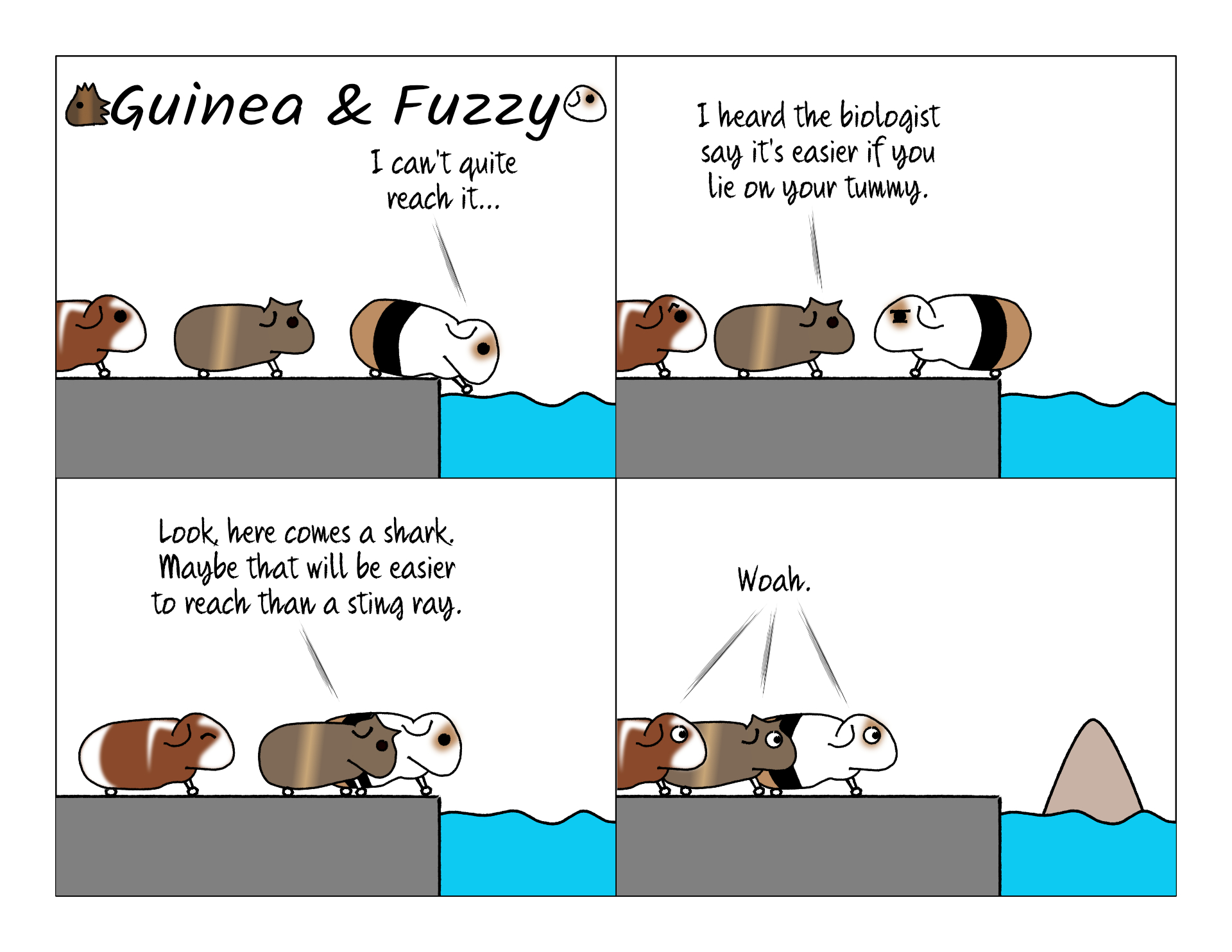 Of course it is much easier to pet those sharks in the touch tank than the sting rays. The sting rays are so deep, they're hard even for an adult to reach. But the sharks occasionally swim close to the top of the water. They're small, cute sharks, but they'd probably be pretty scary for a guinea pig.