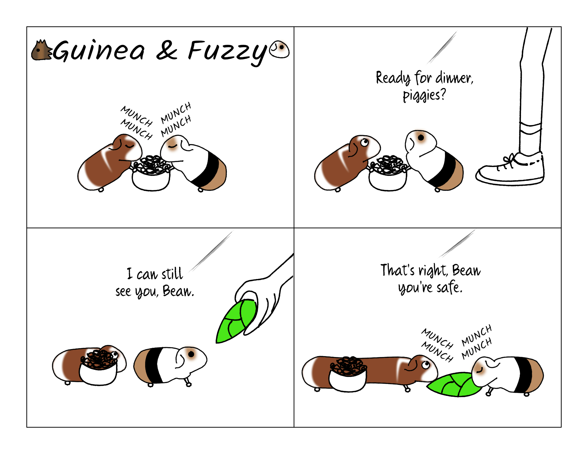 Bean is very rarely this afraid of us anymore, but sometimes the mood strikes him. Not enough to run away, but he might hide behind the closest obstacle. Even when the closest obstacle is a pellet bowl nowhere near big enough to hide him.