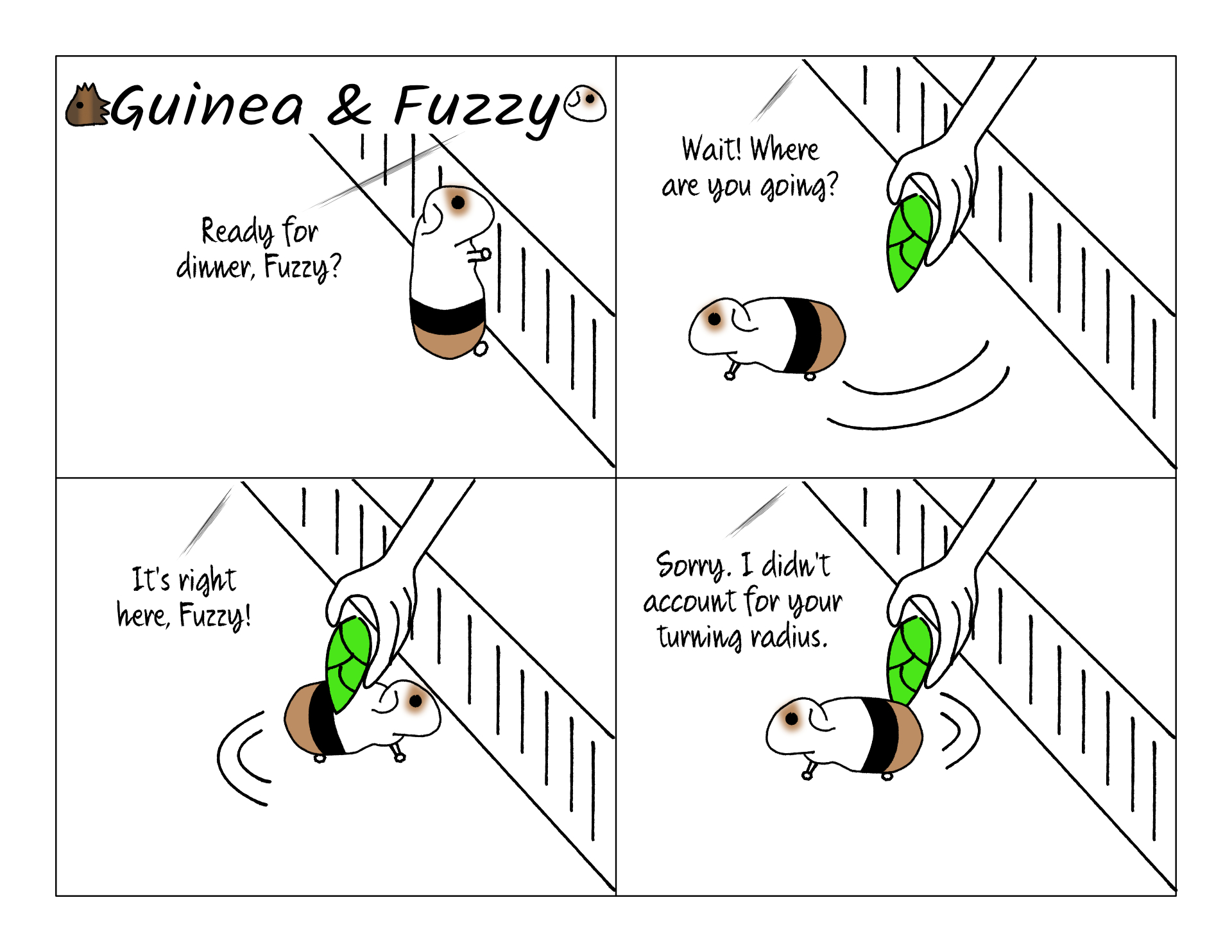 The pigs don't leave room in front of them to drop the veggies and this happens. They can't turn tight enough and they end up chasing the veggie in circles while I'm trying to put it in front of them.