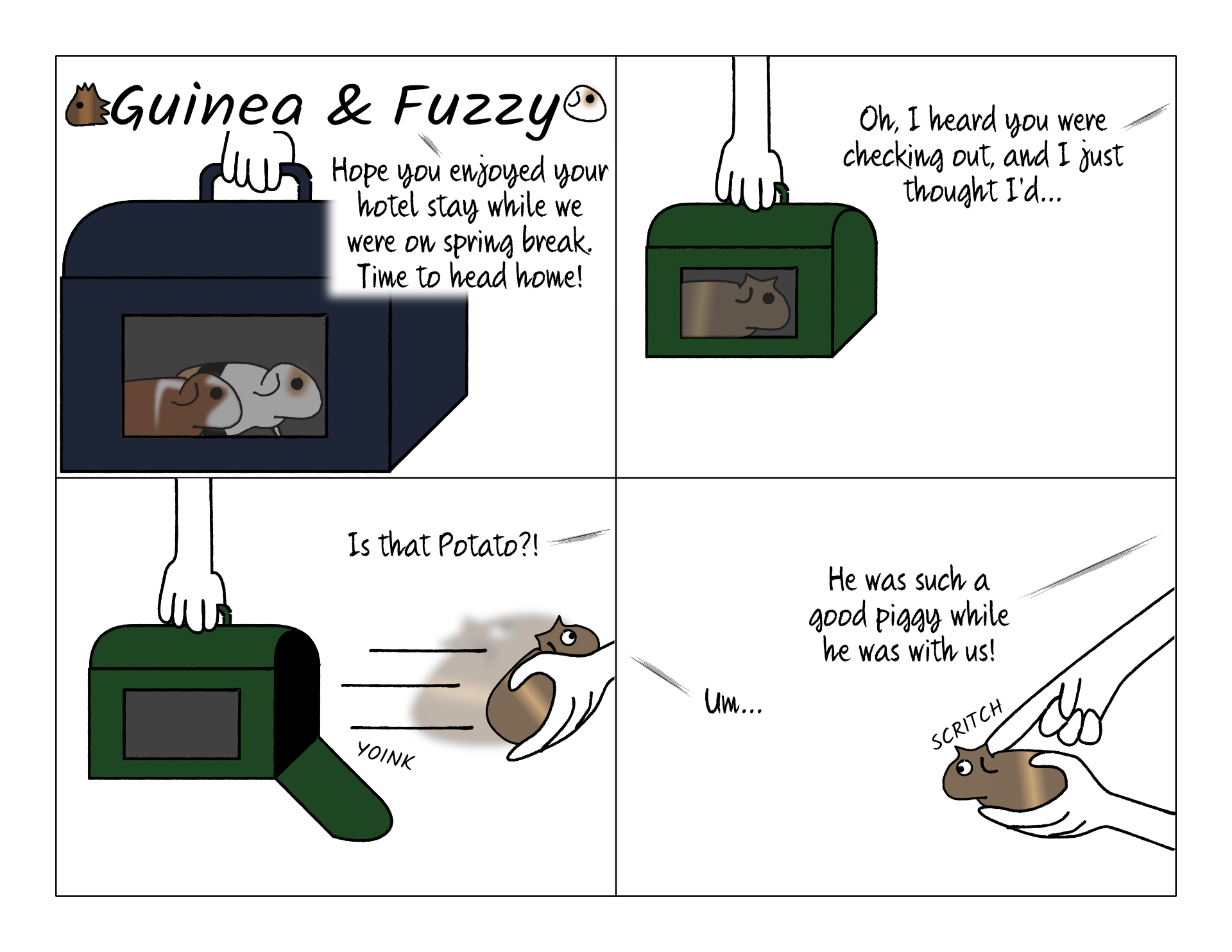 The people at the pig kennel love our pigs, but there's one person who especially loves Potato. Whenever we come to pick him up, she always has to come over for goodbye hugs.