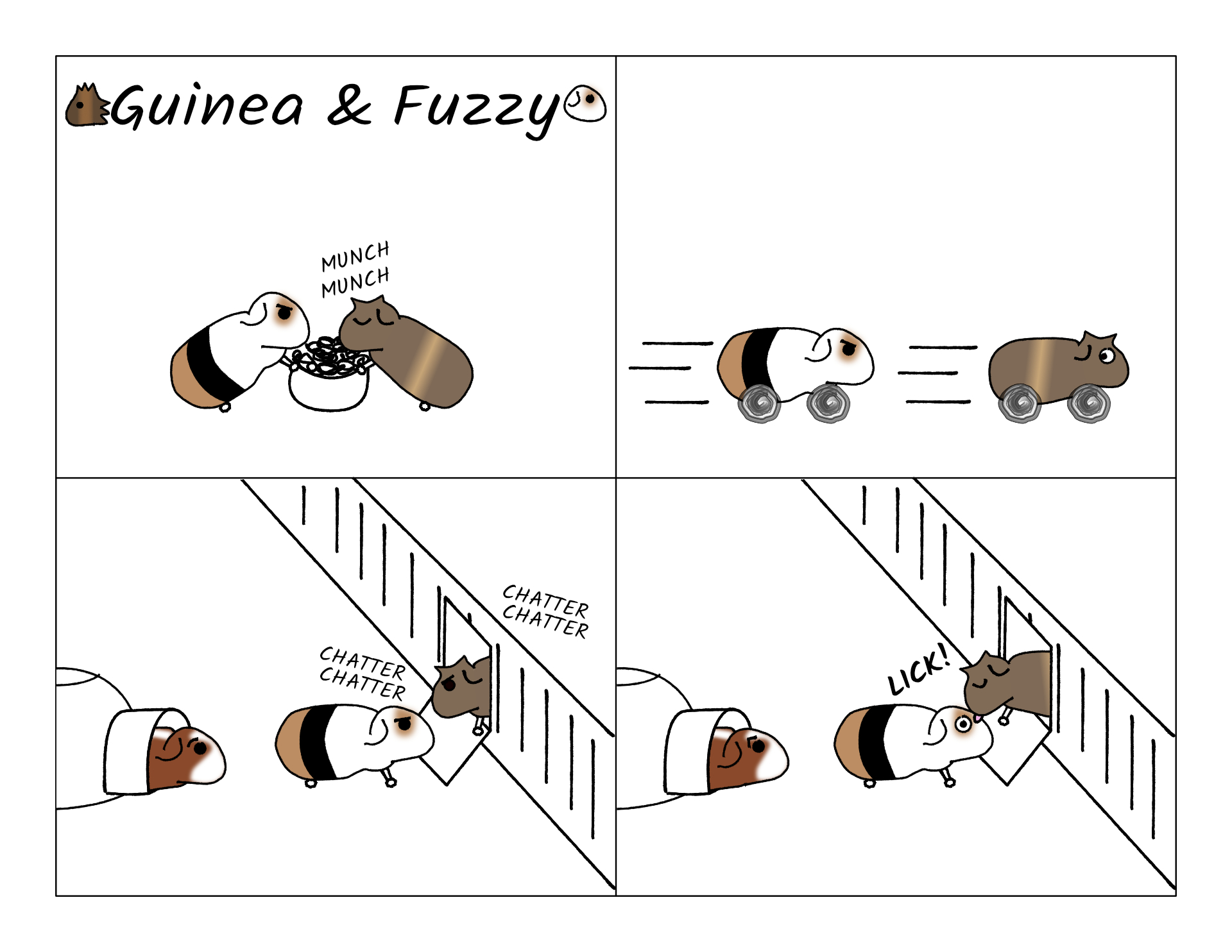 We're not really sure why Potato licks Fuzzy 's eyes, but sometimes he'll do it at the least expected time. That Potato really knows how to end a fight.